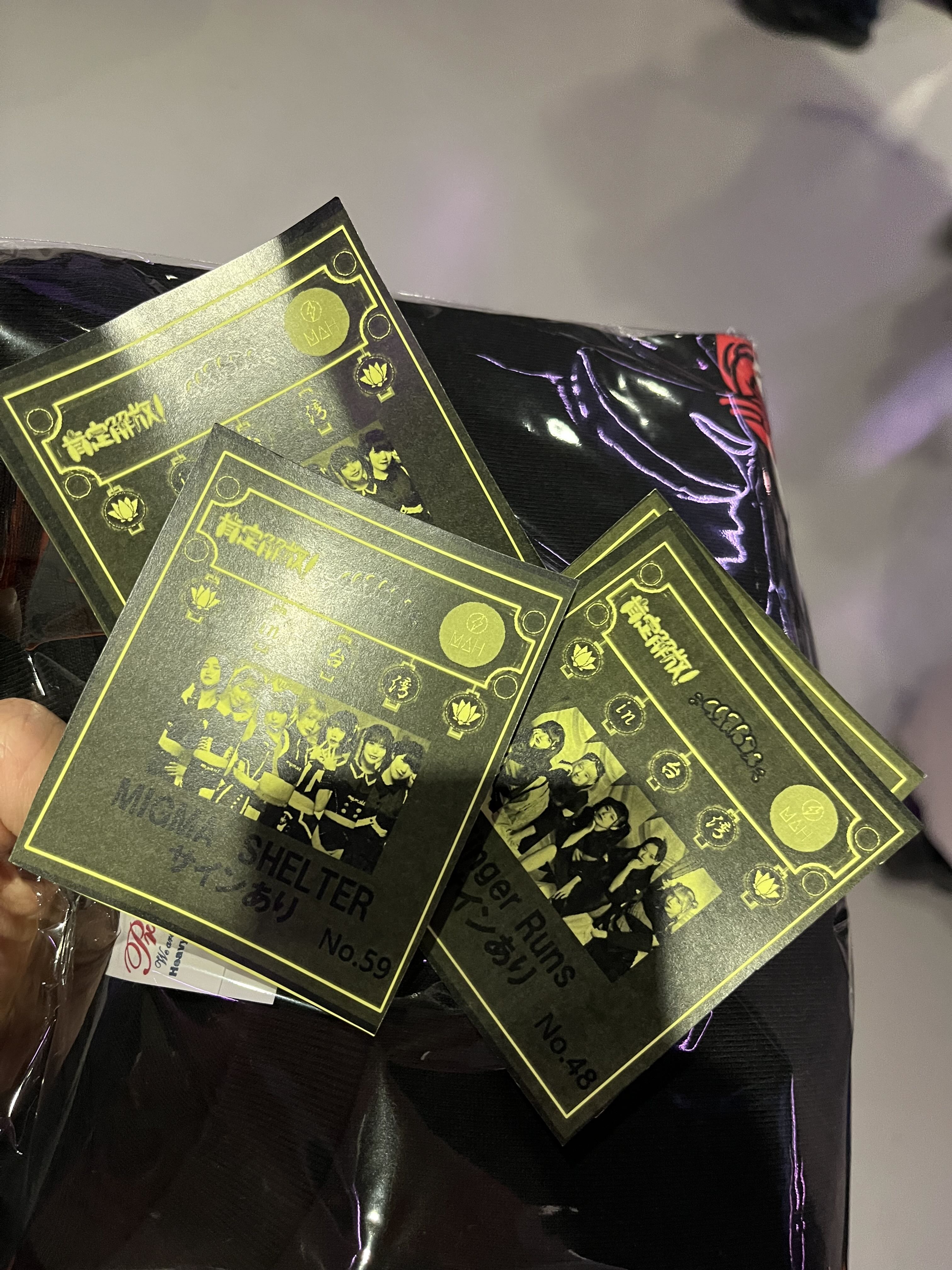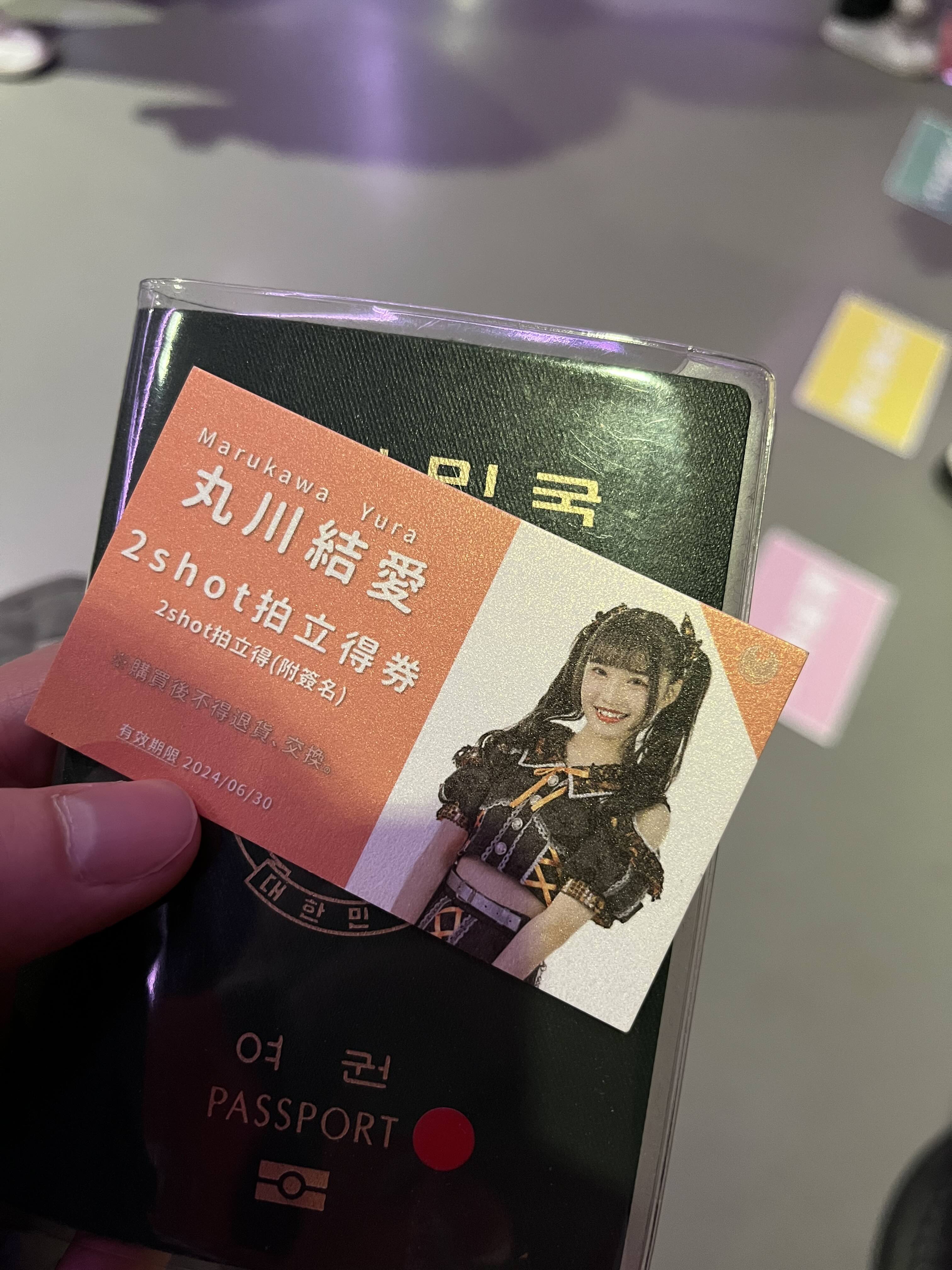 오전에는 원정 온 오타쿠들이 중심이 되었기 때문에 대만팀들 물판을 도는 오타쿠가 생각보다 적었다. 혹시나 일찍 종료할 것 같은 느낌이 들어서 핑거 돌고 빨리 대만팀 물판 부스로 갔다. 이름도 제대로 몰랐기 떄문에 스텝한테 색깔로 구분해서(평소 의상에 멤버 컬러 있는거 스타일 너무 정형화 되는 것 같아서 극혐 하지만 이런 때는 유용하긴 함) 체키권 달라고 전달하는데 체키권을 보니 팀이 아니라 멤버 별로 나눠져 있어서 좀 특이하다는 생각을 했다. 멤버 체키권 따로 운영하는 팀을 내가 다니는 주겐바에서는 요근래 본 경험이 없던지라.