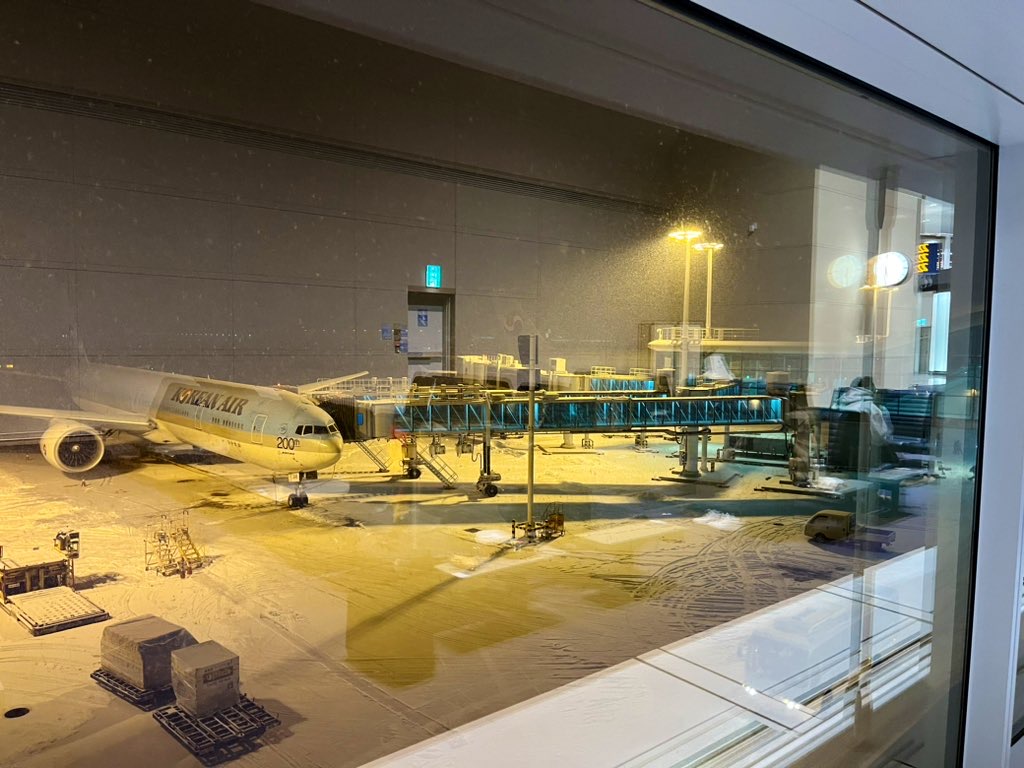 출발 전의 인천공항 제2터미널, 눈이 미친 듯이 내리기 시작했다. 결국 1시간 연착 그리고 오전 겐바는 포기.