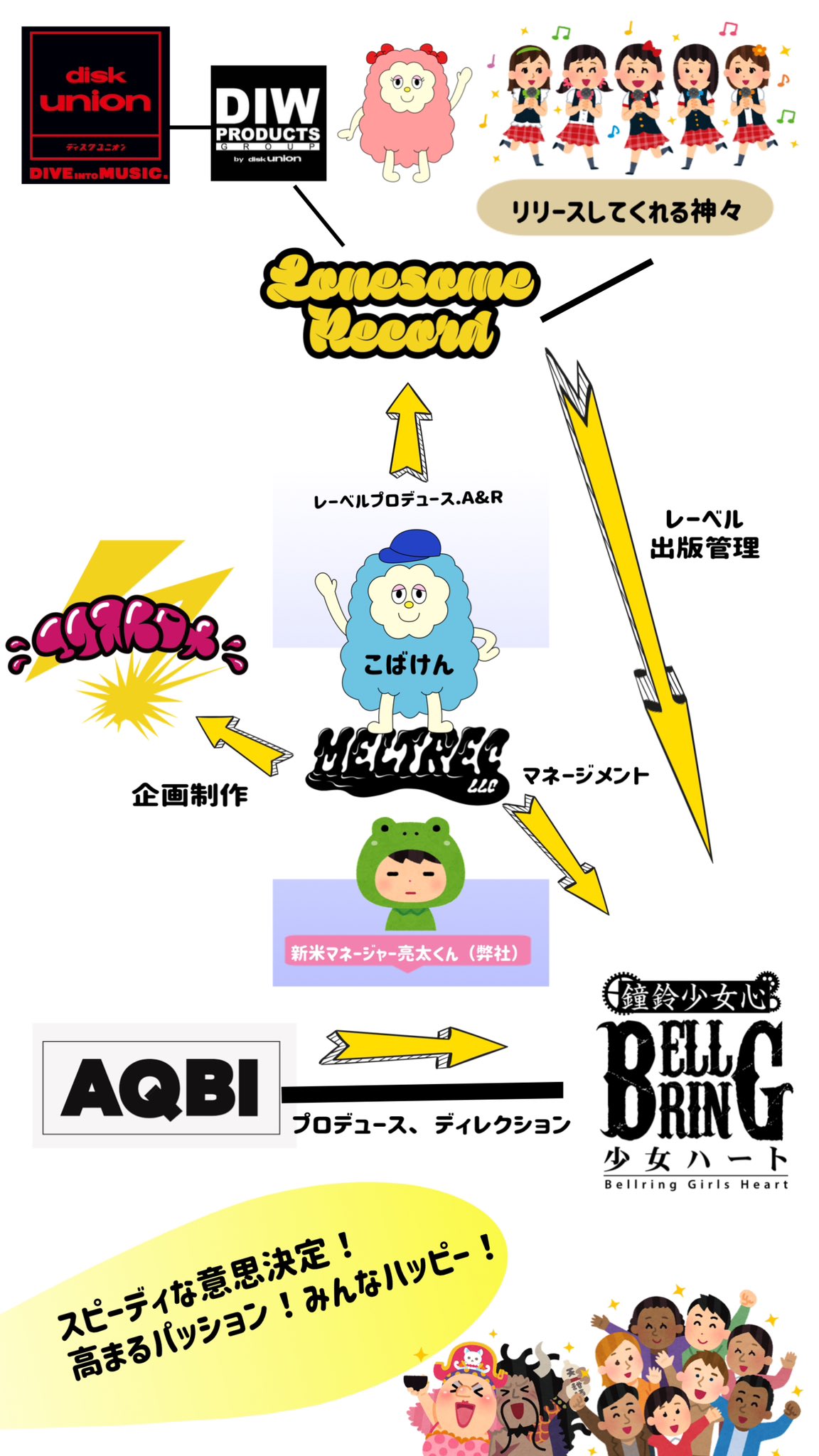 기존 베루하와는 다르게 프로듀싱은 여전히 AQBI의 다나카상이 하고 있고 지금도 AQBI 계열로 묶이고 있지만 매니지먼트는 코바켄상 쪽에서 담당한다. (MELTREC이라는 회사를 꾸려서 매니지먼트 지원함) 따라서, 스케쥴 관리나 물판 같은 내용은 현재 AQBI가 아닌 별도로 나뉘어져 있다. (Finger Runs와 MIGMA SHELTER의 부스가 같이 묶여있고 베루하는 따로 부스가 있음)