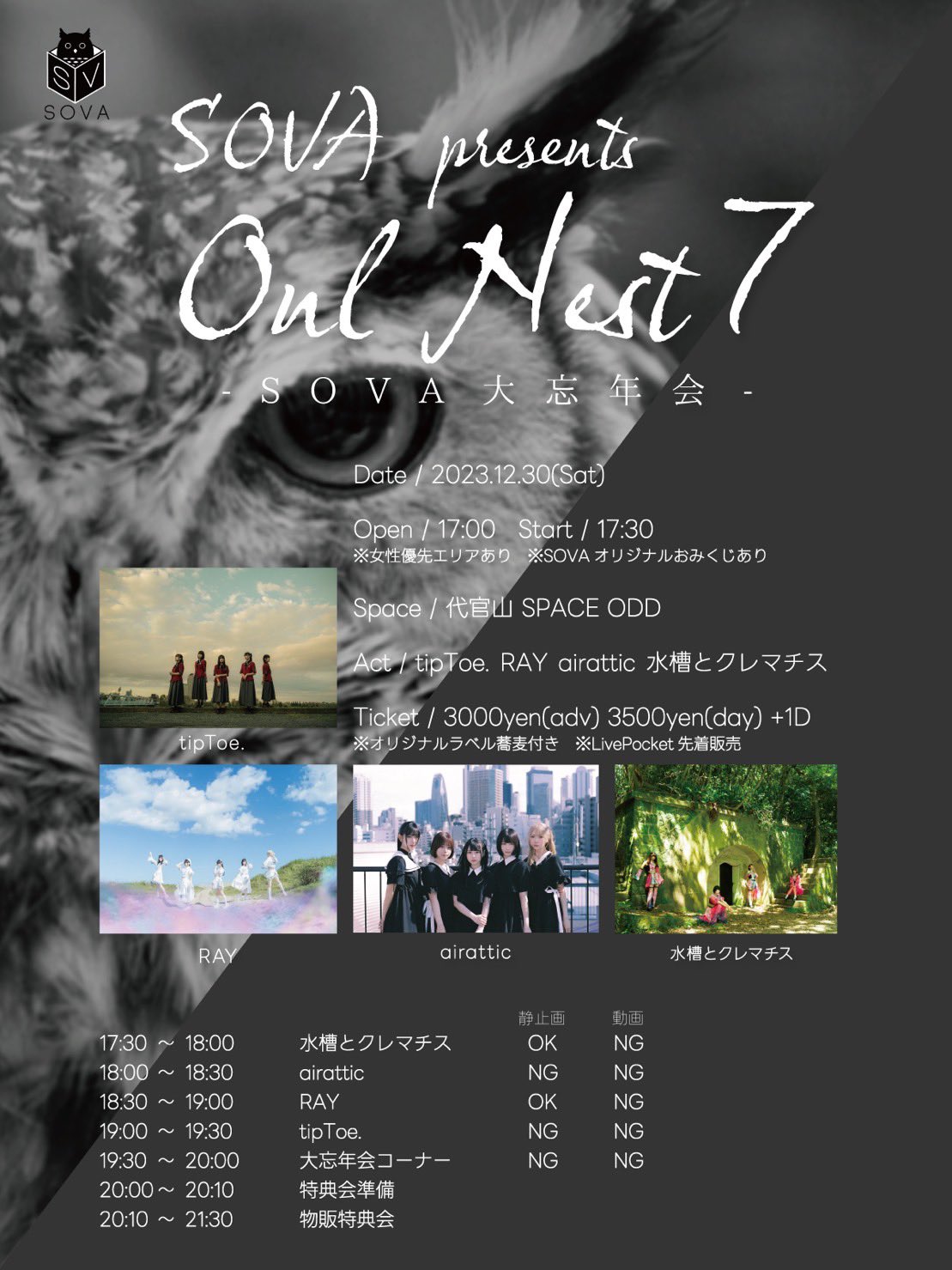 SOVA 그룹들이야 airattic(이하 에아라)는 '23년 주 겐바 중 하나였고 RAY, tipToe.는 에쿠스토로메 단골이다보니 알게 모르게 익숙해지고 좋아하는 곡들도 많았는데 이게 사무소 방침인지는 몰라도 가끔 사무소 그룹들 투맨 정도야 있었지만 AQBI DIG 마냥 사무소 전 그룹이 같이 나오는 타이반은 없는 듯 싶었다. 그러다가 망년회가 떴는데 보기 드문 광경인지라 무조건 가야겠다 싶었음.
